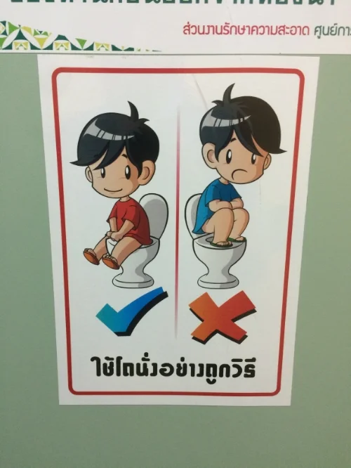 Squat toilets are holes in the ground. First, to use them, you have to get in a deep, deep squat. For someone with a bum knee (like me), the correct form isn’t even in the realm of possibilities. Second, there is no toilet paper. Ever. Thailand does not have the plumbing infrastructure to handle toilet paper. So, they never provide it. If it’s not there, it won’t clog the toilet. Simple. Instead, there is a water hose type apparatus beside the toilet that can most closely be related to a redneck bidet and is used to “clean” yourself.