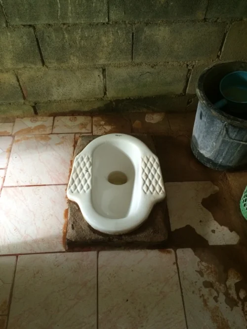 To baffle the mind even further, there is clearly plumbing in the bathroom! The buckets of water used to self-flush the toilet are being filled from a pipe with running water. HELLO PEOPLE?! For the love of humanity, install a normal toilet! Can't you see how simple it would be? I feel like I'm taking crazy pills with this nonsense!