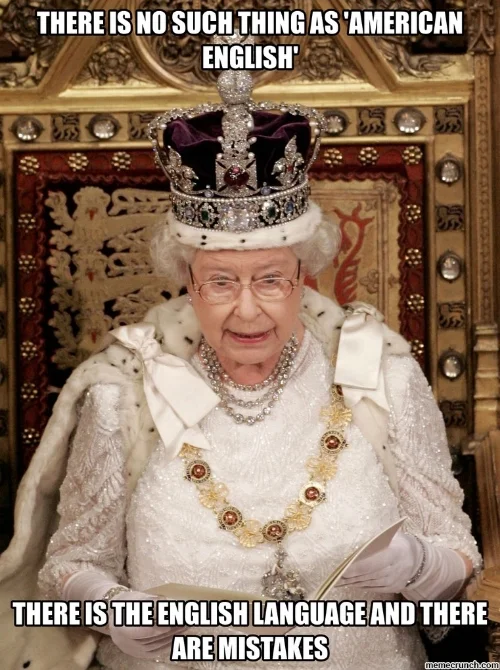 "For the avoidance of doubt, there is no such thing as 'American English.' There is the English language, and there are mistakes." -Elizabeth Windsor