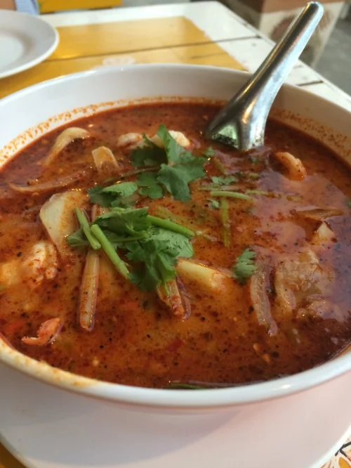 "Tom Yum" soup. If you don't like spice, stay away from this.