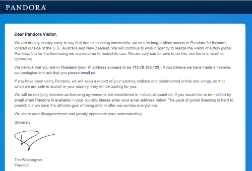Or, Pandora and got this message.