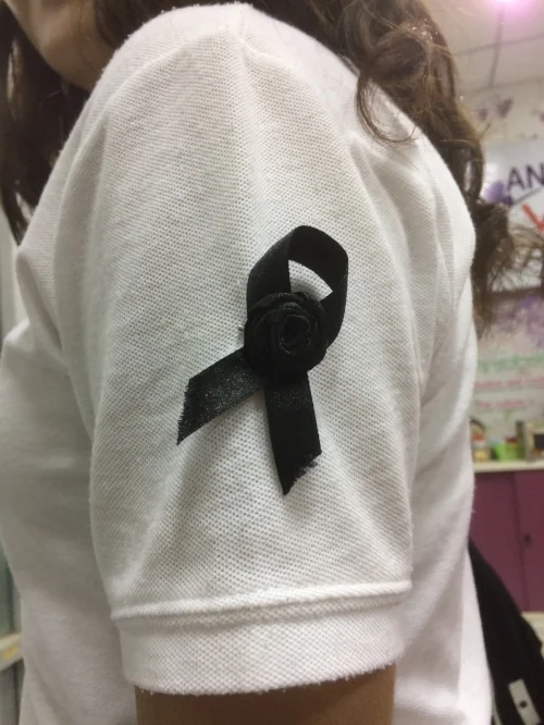If you are not wearing black, a ribbon should be placed on your left sleeve to honor the King.