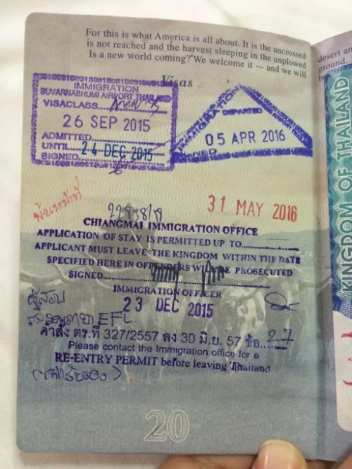 To start working in Thailand, I needed a visa, which was another full page sticker. Being a PSW, I still liked the idea of my passport getting full. But, then came the 90-day check-ins with immigration to prove I'm still working. That's another stamp that takes up half a page. PER TRIP.